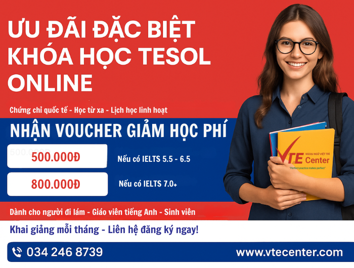 🎓 ƯU ĐÃI ĐẶC BIỆT KHÓA HỌC TESOL ONLINE TẠI VTE CENTER