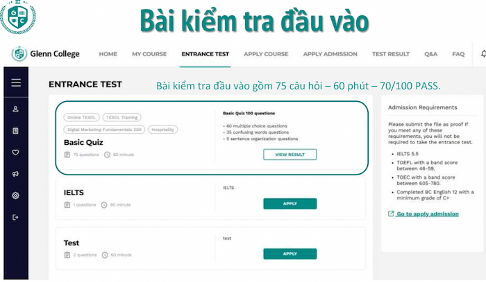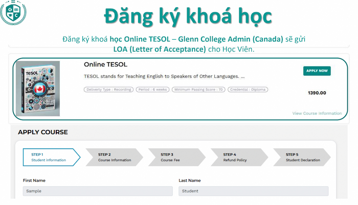 Sau khi đạt yêu cầu đầu vào, học viên sẽ đăng ký khóa học Online TESOL trực tiếp trên hệ thống Glenn College.