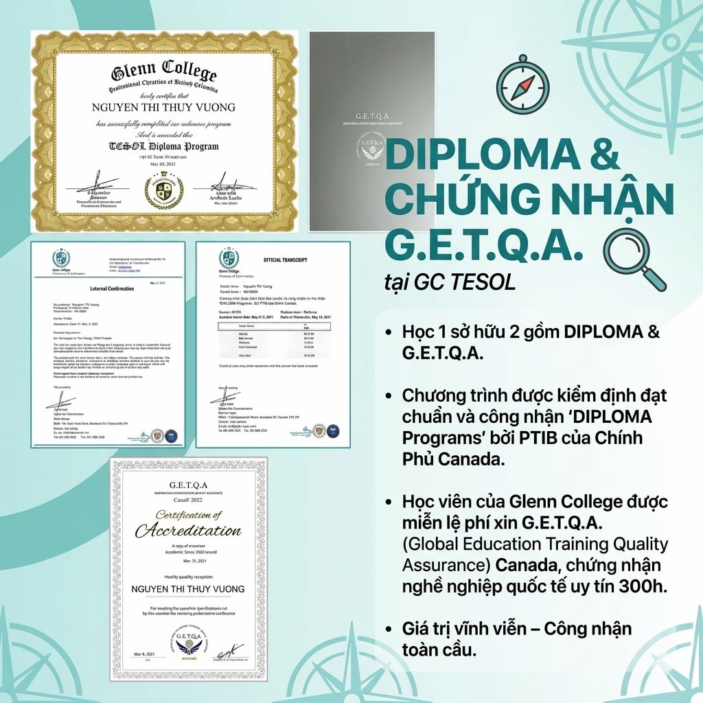 Chứng nhận G.E.T.Q.A là tiêu chuẩn kiểm định quốc tế, khẳng định năng lực giảng dạy sau khóa học.